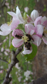 “The results of the study show that native bees pollinated apple trees just as well as the honeybee, and that Andrena crataegi was clearly the main bee performing the pollination of the apple flowers,” said Schlueter. “We observed the mining bee interacting and pollinating the apple flowers during the apple bloom, males and females crawling deep within the apple flowers, and even males asleep in the apple flowers.”