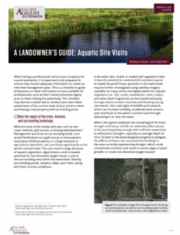 When having a professional come to your property for a pond evaluation, it is important to be prepared to ensure they receive adequate information to create an informed management plan. This is a checklist to guide landowners on what information to have available for professionals, such as their County Extension Agent, prior to them visiting the waterbody. This checklist may also be a useful tool to conduct your own initial assessment of the current state of your pond or when purchasing a new property with an existing pond.