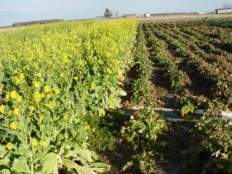 Cover crops can be used to provide weed suppression in subsequent cash crops. In the Southeastern and Mid-South U.S., questions concerning management of herbicide-resistant Amaranthus species, horseweed, and Italian ryegrass, comprise the majority of Cooperative Extension Service calls. Conservation agriculture practices are especially threatened by the emergence and rapid spread of glyphosate-resistant Palmer amaranth. The use of cover crops for weed control can help conventional producers combat herbicide-resistant weeds and organic producers reduce dependency on cultivation as their primary weed control mechanism. When using cover crops for weed control, cover crops are often terminated via roller-crimping that leaves a weed-suppressive mulch on the soil surface into which the cash crop can be directly planted. A roller-crimper terminates weeds by rolling the cover crop down at an appropriate growth stage and simultaneously crimping the cover crop stems which accelerates desiccation. A surface mulch can reduce weed pressure through physical impedance, depriving weeds of light, and through allelopathy. A key to successful weed control when using this system is to achieve high cover crop biomass. Cereal rye (Secale cereale) is a popular cover crop choice in this system for its ability to produce a large quantity of biomass. Cereal rye can be easily terminated via roller-crimping at soft dough stage. However, planting into a high cover crop biomass mulch can be a challenge. Conventional producers can use strip-till rigs, which will move the cover crop residue several inches away from the crop row and allow for good cash crop seed-to-soil contact. Non-organic producers can then affordably use a banded herbicide application to control in-row weeds. For an organic producer, it is important to keep as much cover crop residue in the crop row as possible due to lack of affordable and effective in-row weed control options. Researchers and producers have been working on planter designs which can plant reliably and efficiently into heavy cover crop biomass mulches.